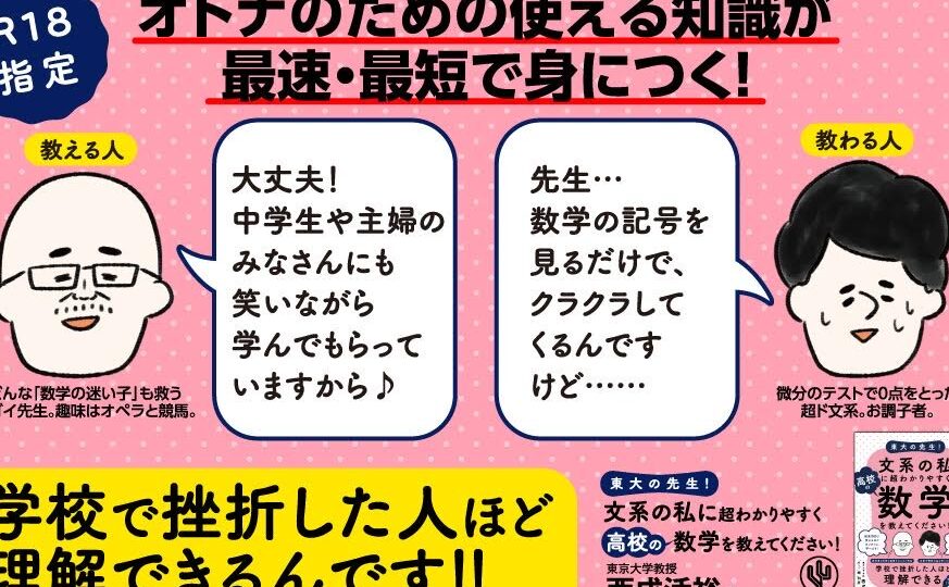 数学が苦手な私たちにとって、難解な数式や理論はまるで別の言語のように感じられます。でも、もし東大の先生が私たちに超わかりやすく教えてくれたらどうでしょうか?文系の私たちでも理解できる数学の世界が広がるかもしれません。